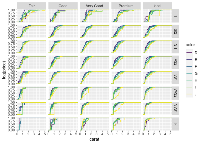 carat + stat_ecdf() + facet_grid(clarity ~ cut)